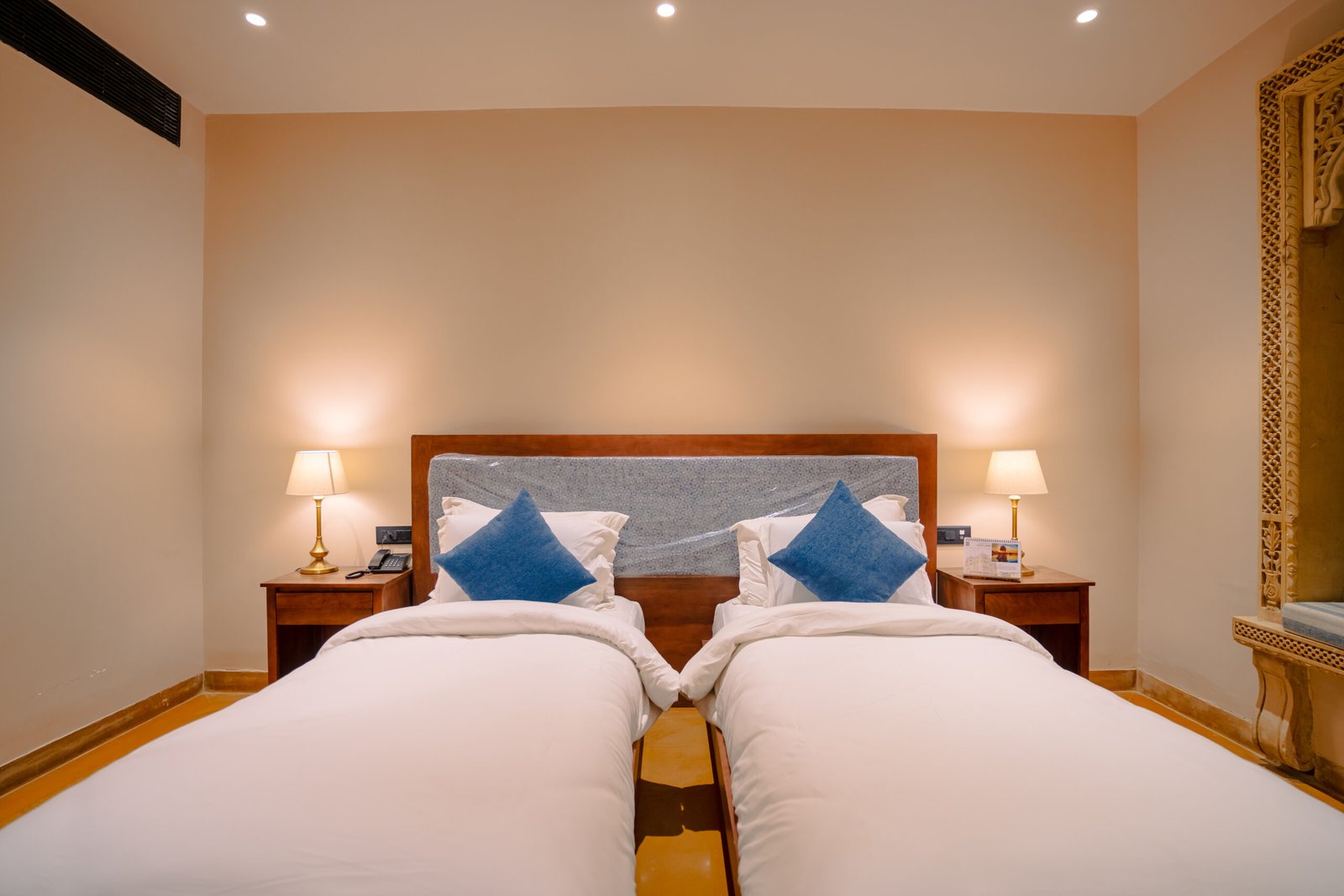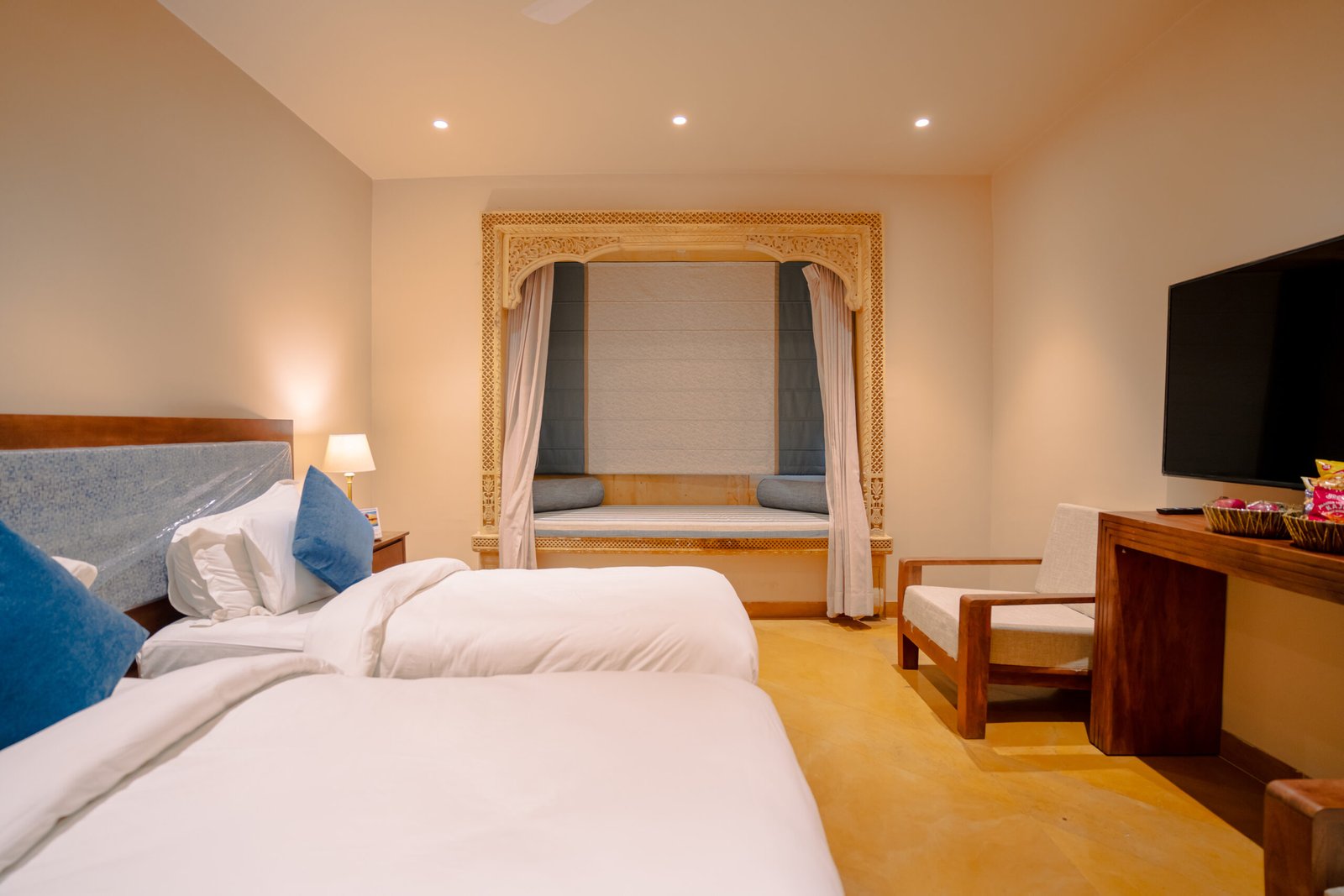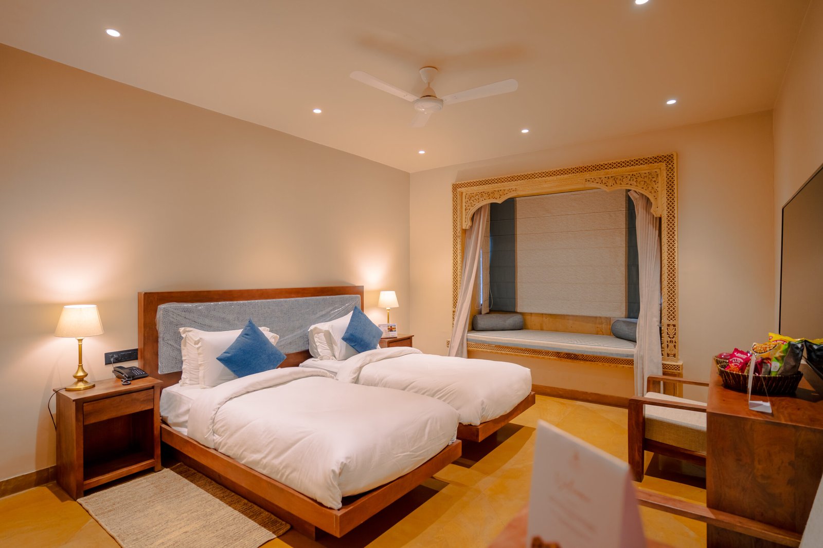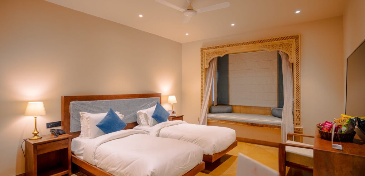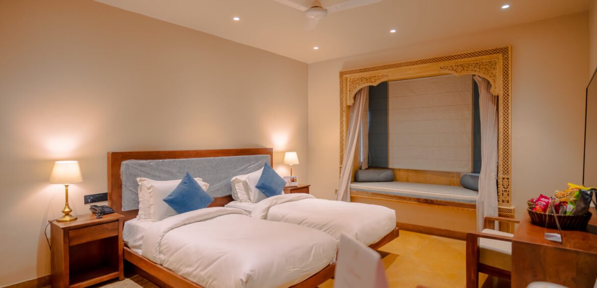 Designed for shared stays, this twin-bedded room offers flexibility, comfort, and a private balcony. Ideal for friends, colleagues, or business travelers looking for a relaxed and convenient accommodation in Jaisalmer.